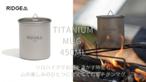 - RIDGE MOUNTAIN GEAR「Titanium Mug 450ml」ソロハイクでお湯を沸かす時間も、山の楽しみのひとつに変えてくれるチタンマグ