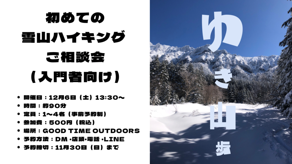 いつもご愛読いただき誠にありがとうございます。GOOD TIME outdoorsです。 12月も後半にはいり、山のほうでは冬のハイキングシーズンが本格化してき…