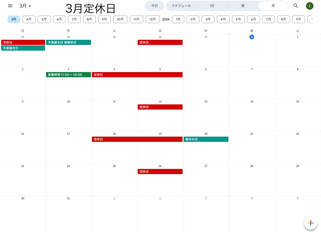 3月の定休日をお知らせをさせていただきます。 3月定休日4日(火)5日(水)12日(水)19日(水)26日(水) 営業時間変更日3日(月) 11:00~18:0…