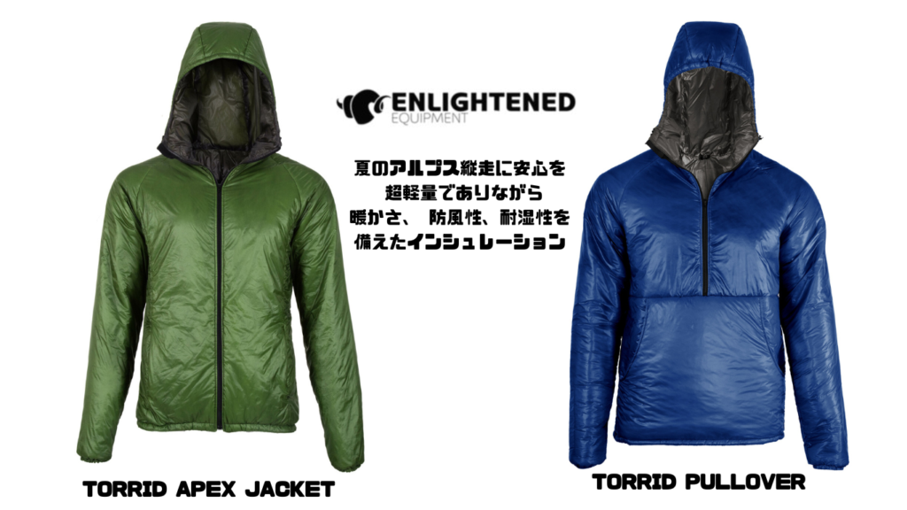 【夏のアルプス縦走に安心を】超軽量でありながら暖かさ、防風性、耐湿性を備えたインシュレーション|ENLIGHTENED EQUIPMENT・Torrid Jacket &Torrid Pullover